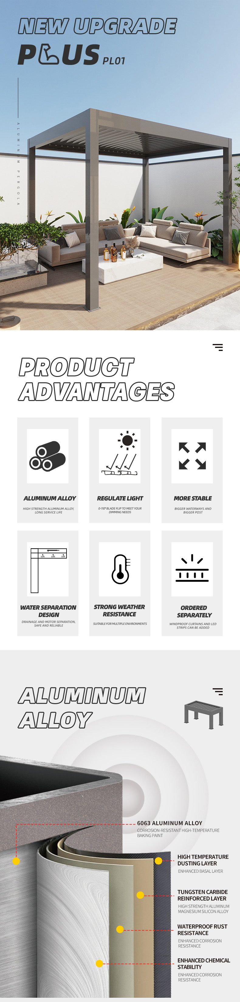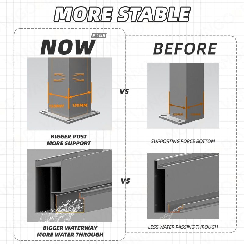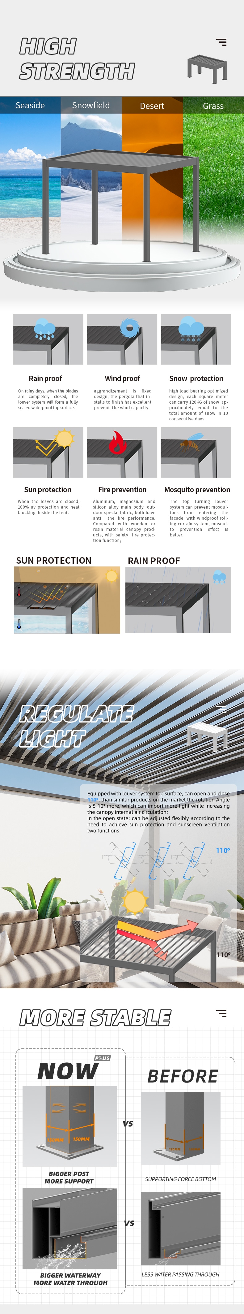 The post, beam, and louver connections are robust,providing excellent wind resistance.