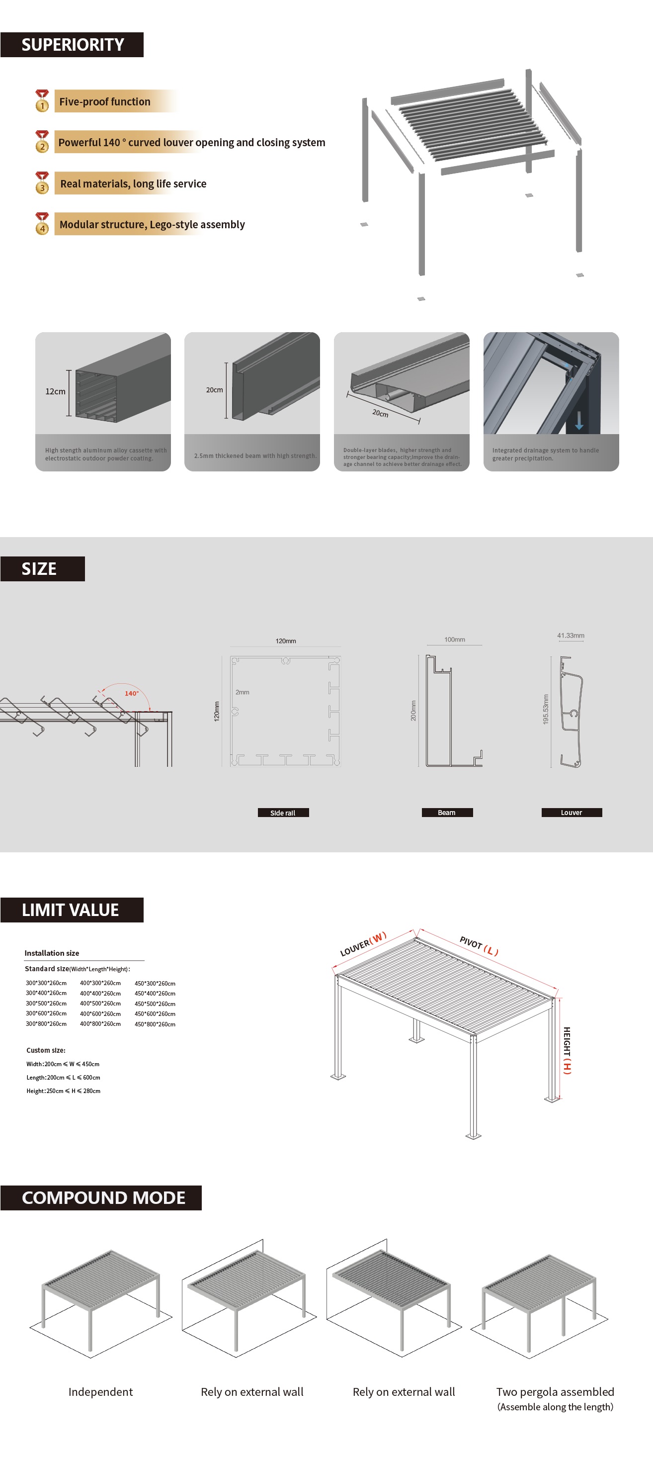 | Model Number | Heavy Duty Motorized Aluminum Pergola | |||