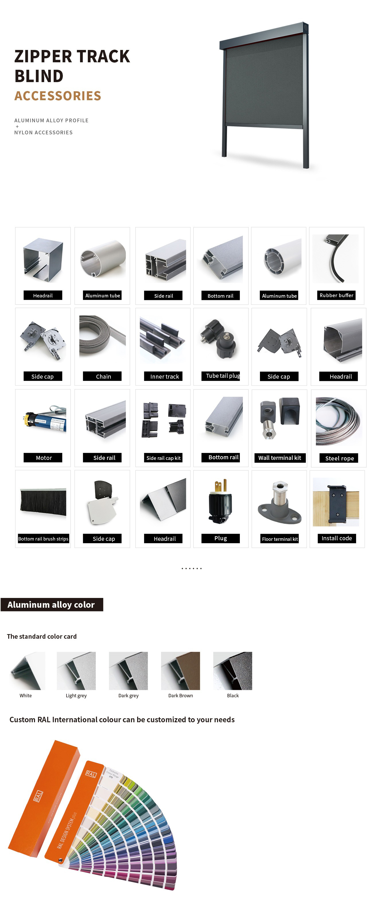 Zipper blind accessories