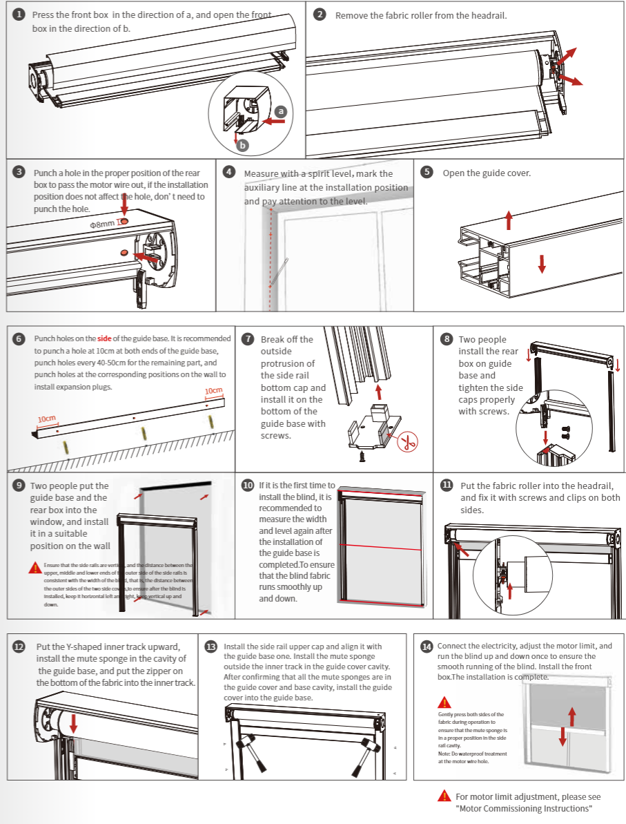 13. Connect the electricity, adjust the motor limit, and run the blind up and down once to ensure the smooth running of the blind.